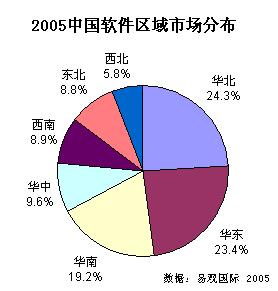 2005中國(guó)軟件區(qū)域市場(chǎng)分布圖