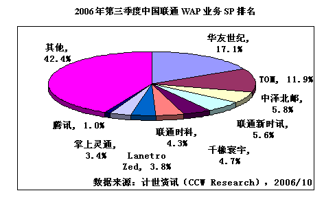 2006年第三季度中國移動WAP業(yè)務(wù)SP排名