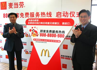 麥當勞開通長三角800顧客免費服務熱線