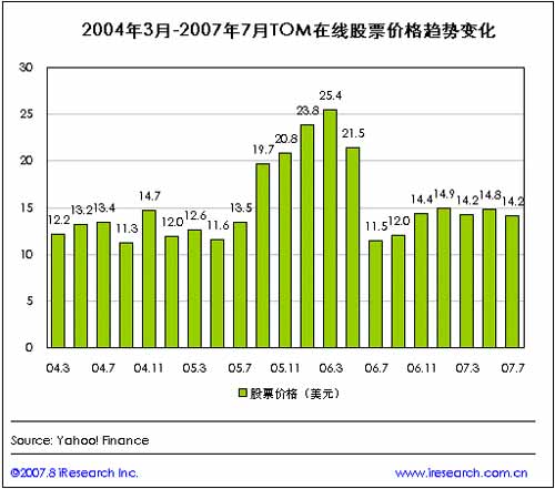 外界普遍認為TOM在線的退市是因為其母公司TOM集團對TOM在線股價長期被低估而感到不滿。盡管或許存在著股價被低估的可能性,但股價被低估并不與退市之間成必然的因果關系,與TOM在線經營相似業(yè)務的空中網,股價長期停留在15美元以下,近一年內更是僅維持在10美元以下。