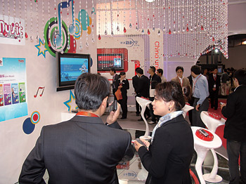 在通信展上,中國(guó)移動(dòng)在展場(chǎng)核心區(qū)展示了面向2008年奧運(yùn)會(huì)的奧運(yùn)無(wú)線業(yè)務(wù)和全曲下載“音樂隨身聽”,中國(guó)聯(lián)通則重點(diǎn)展示了其最具特色的整首音樂下載業(yè)務(wù),吸引了大批觀眾。許多觀眾還在中國(guó)移動(dòng)和中國(guó)聯(lián)通無(wú)線音樂展臺(tái)前,現(xiàn)場(chǎng)聆聽各種動(dòng)聽的歌曲,體驗(yàn)無(wú)線音樂的魅力?梢哉f,手機(jī)音樂成為手機(jī)娛樂業(yè)務(wù)中最受人們關(guān)注的亮點(diǎn)。