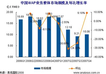 中國WAP業(yè)務整體市場規(guī)模及環(huán)比增長率