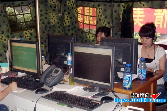 5月15日,在川航信息服務(wù)處、后勤支援中心及商旅公司、成都營業(yè)部等部門大力支持下,在辦公樓下的空地上搭建起了呼叫中心應(yīng)急工作帳篷。每天呼叫中心兵分兩路,絕大多數(shù)坐席在辦公樓工作,同時指派4位業(yè)務(wù)骨干坐席駐守在帳篷里。在余震不斷的情況下,保證了24小時電話暢通,滿足了旅客在余震中急于出行的需求。