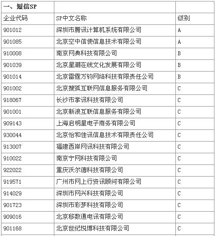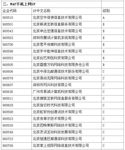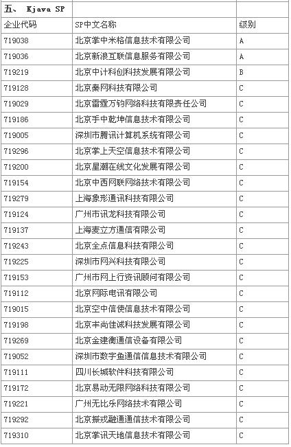 附:08年移動(dòng)夢(mèng)網(wǎng)SP第二次分層分級(jí)評(píng)級(jí)結(jié)果