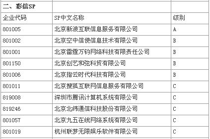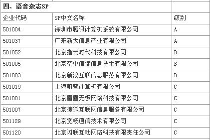 業(yè)界普遍認(rèn)為,此次評(píng)級(jí)結(jié)果對(duì)于騰訊、空中、TOM等老牌SP較為有利,未能進(jìn)入憑借的SP將面臨較大的生存壓力。