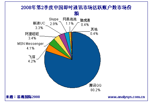 2008年第2季度中國即時通訊活躍帳戶數(shù)達(dá)4.26億