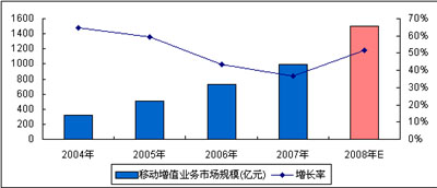 圖5 2008年中國(guó)移動(dòng)通信增值業(yè)務(wù)市場(chǎng)總體規(guī)模預(yù)測(cè)