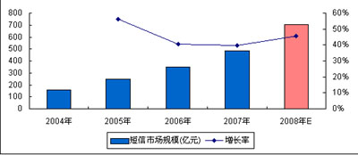 圖6 2008年中國(guó)短信市場(chǎng)規(guī)模預(yù)測(cè)