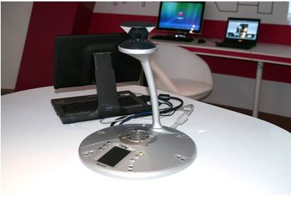 在耐心聽(tīng)完介紹后,禁不住誘惑,我便親自做了現(xiàn)場(chǎng)體驗(yàn),原來(lái)這套系統(tǒng)所使用的360o攝像頭不同于一般的攝像頭,它集4個(gè)攝像頭以及USB設(shè)備為一體,不改變位置就能輕松實(shí)現(xiàn)360度全景覆蓋,讓所有人真正面對(duì)面交流。而投影儀的界面設(shè)定更是人性化,界面分上下兩部份,上半部分顯示的是PPT內(nèi)容和發(fā)言者,下半部分顯示的是與會(huì)人員。而它的智能語(yǔ)音識(shí)別系統(tǒng)更是讓人叫絕,投影儀上的發(fā)言區(qū)頭像根據(jù)發(fā)言者的聲音自動(dòng)更換,而不受人聲以外的任何聲音的干擾。系統(tǒng)并附帶情景解說(shuō)詞,系統(tǒng)會(huì)自動(dòng)介紹與會(huì)人員所在地。在投放PPT界面旁邊有個(gè)信息欄,在上面能夠看到負(fù)責(zé)人的在線信息,并且可以選擇最合適的方式進(jìn)行溝通,不但可以發(fā)即時(shí)消息和傳輸文件,還可以進(jìn)行語(yǔ)音通話,甚至可以直接用語(yǔ)音連接辦公室電話,只要有網(wǎng)絡(luò),隨便哪里都可以接得到辦公室電話。