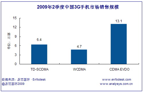 2009年第2季度中國(guó)3G手機(jī)市場(chǎng)整體銷量達(dá)到24.2萬(wàn)