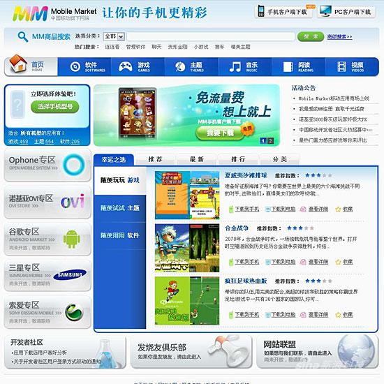 短暫開(kāi)通的中國(guó)移動(dòng)Mobile Market網(wǎng)站顯示,中國(guó)移動(dòng)手機(jī)應(yīng)用程序商店的正式名稱為Mobile Market移動(dòng)應(yīng)用商場(chǎng),中國(guó)移動(dòng)自己簡(jiǎn)稱其為MM。
