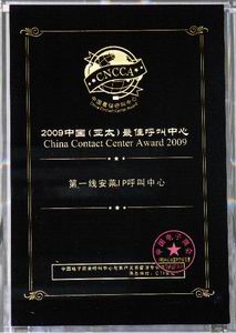 第一線安萊榮獲“2009中國(亞太)最佳外包呼叫中心”獎(jiǎng)