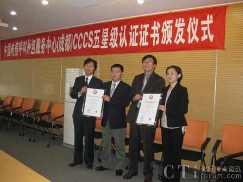 CTI論壇(ctiforum)11月5日消息: 日前,中國電信呼叫外包服務(wù)中心(成都)獲頒CCCS五星級(jí)客戶聯(lián)絡(luò)中心證書,成為國內(nèi)通過CCCS五星級(jí)認(rèn)證的首家外包呼叫中心。