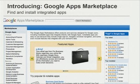 通過(guò)開(kāi)通Apps Marketplace商店,谷歌僅需提供一個(gè)應(yīng)用程序平臺(tái),而無(wú)需親自開(kāi)發(fā)每一款應(yīng)用程序。谷歌技術(shù)開(kāi)發(fā)副總裁維克·岡多特拉(Vic Gundotra)表示,目前Google Apps商業(yè)用戶量已達(dá)200萬(wàn)家,總用戶量已達(dá)2500萬(wàn)人。