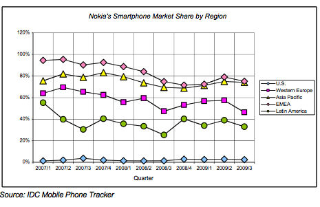 諾基亞智能手機(jī)市場(chǎng)份額變化圖