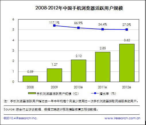 艾瑞報告稱今年手機(jī)瀏覽器用戶預(yù)計將破兩億