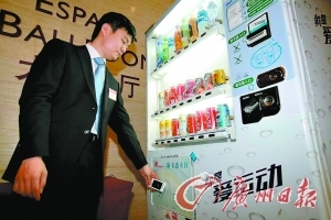 昨日,深圳本土研發(fā)的手機支付自動售貨機亮相,市民直接拿手機在自動售貨機上一刷,就能買飲料和食品。該系統(tǒng)支付主要依靠全球首款智能SD手機存儲支付卡,市民只需將此卡插入手機,便能輕松實現(xiàn)手機支付。有關(guān)負責人表示,或?qū)研乱淮詣邮圬洐C投入大運村供運動員使用。