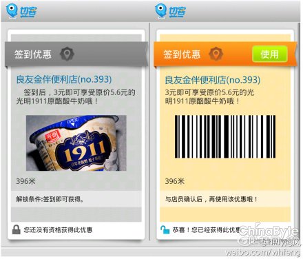 小姑娘告訴吳阿姨,她這是在用一個(gè)叫做“切客”的軟件,只要用“切客”簽到良友便利,就能在手機(jī)上得到一個(gè)條形碼,埋單的時(shí)候刷這個(gè)條碼,原價(jià)五塊六毛的光明1911原酪酸牛奶,只要3塊錢(qián)就能買(mǎi)到。