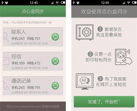 9月22日消息,繼點心桌面、點心省電等點心系列應用發(fā)布之后,點心系列軟件迎來了新成員――點心盒同步,點心盒同步能即時將聯(lián)系人、短信、通話記錄同步備份在云端,并且支持云端管理資料和收發(fā)信息,目前支持Android2.2及其以上版本。