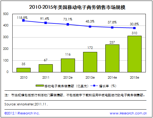 2015年美國移動(dòng)電子商務(wù)市場(chǎng)規(guī)模將達(dá)到310億美元