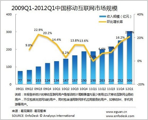 易觀:2012Q1中國移動(dòng)互聯(lián)網(wǎng)市場規(guī)模突破300億