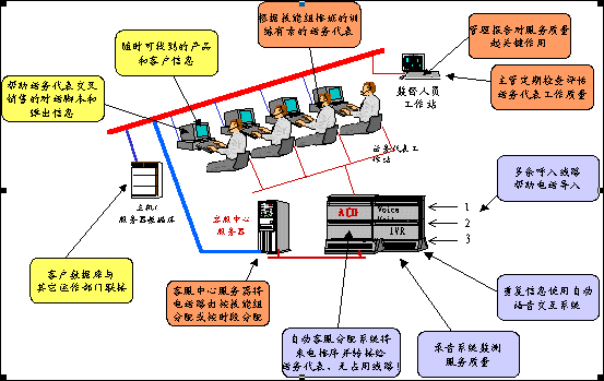 。。呼叫中心可以這樣定義,它是充分利用現(xiàn)代通訊與計(jì)算機(jī)技術(shù),如IVR(交互式語音應(yīng)答系統(tǒng))、ACD(自動(dòng)呼叫分配系統(tǒng))等等,可以自動(dòng)地處理大量各種不同的電話呼入和呼出業(yè)務(wù)和服務(wù)的運(yùn)營(yíng)操作場(chǎng)所。
