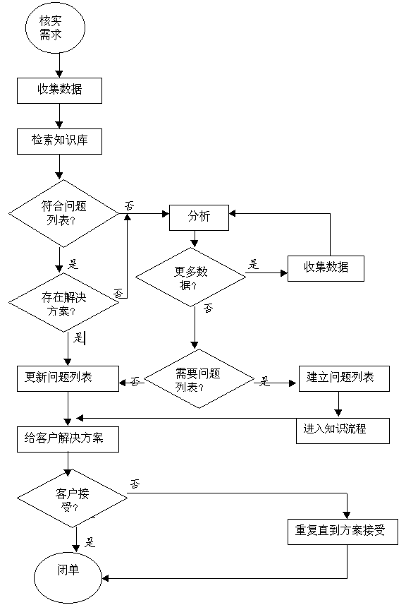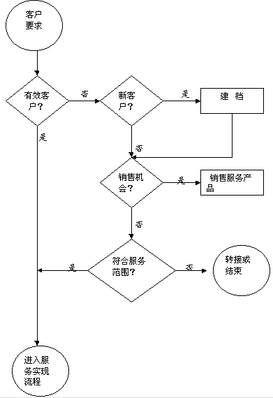 ----在呼叫中心中,面對客戶的流程主要有三大類:核實(shí)流程,服務(wù)實(shí)現(xiàn)流程和知識流程。我將三個典型的流程圖列出并希望能夠省略文字解釋的篇幅。根據(jù)業(yè)務(wù)類別的不同,圍繞著主要流程還可以有許多子流程。如在銷售型呼叫中心中服務(wù)實(shí)現(xiàn)流程中就可能會銷售線索派送跟蹤流程和立即銷售流程等。而在立即銷售流程中可能又會有付款收費(fèi)流程的等。