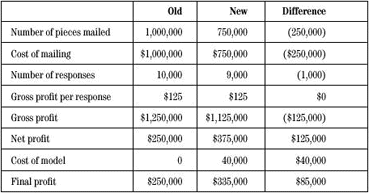 請(qǐng)注意,郵寄的純利潤(rùn)增加了$125,000,甚至你扣除由于數(shù)據(jù)采集而產(chǎn)生的軟件、硬件即人力資源方面的$40,000,純利潤(rùn)還增加了$85,000。建模的投入轉(zhuǎn)化成了200%的收益,這遠(yuǎn)遠(yuǎn)超過(guò)了BB&CC對(duì)這一項(xiàng)目的ROI要求。