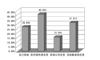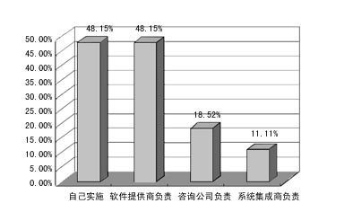 在用戶如何實施CRM系統(tǒng)的調(diào)查中,已應(yīng)用CRM的單位一般都是由自己或軟件提供商負(fù)責(zé),而沒用CRM的企業(yè)則大多期望能由軟件提供商負(fù)責(zé)。這說明,用戶實施CRM的主體意識還不夠強(qiáng)。