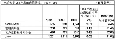 根據(jù)IDC研究,1999年全球CRM應(yīng)用軟件市場(chǎng)正式形成,并快速增長(zhǎng)。CRM軟件和服務(wù)收入的年增長(zhǎng)率高達(dá)71%,其中營(yíng)銷(xiāo)自動(dòng)化軟件的增長(zhǎng)率高達(dá)91.4%。