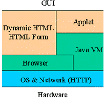Dynamic HTML可以很好地進(jìn)行公開信息的發(fā)布,通過HTML Form機(jī)制可以從瀏覽器中得到用戶檢索等簡單操作的輸入信息。對于無須身份認(rèn)證、訪問控制的內(nèi)容,在Web Server上可以使用通常的CGI技術(shù)獲取用戶的請求、查詢條件,通過Web Connector還可以使用應(yīng)用服務(wù)其提供的后臺服務(wù),結(jié)果使用HTML方式描述,并可直接回送到客戶端的瀏覽器。如果進(jìn)一步使用Applet技術(shù),還可以在客戶端實(shí)現(xiàn)更為友好的交互式顯示模式。無論是使用DHTML技術(shù)還是HTML Form加上Server方擴(kuò)展(如CGI, ISAPI, NSAPI, fastCGI和servlet等)。它們適合處理的業(yè)務(wù)都是每次請求/應(yīng)答基本獨(dú)立,相互無關(guān)聯(lián)的情況。對于一些更為復(fù)雜的應(yīng)用,要求前后操作具有相關(guān)性,客戶與服務(wù)器端各自保持狀態(tài)的變化且狀態(tài)是相關(guān)的。在這種情形之下,更好的解決方案是將客戶端的所有操作保持在一個Applet中完成,由Applet直接與Web Server交互數(shù)據(jù)來完成請求/應(yīng)答數(shù)據(jù)的交互。