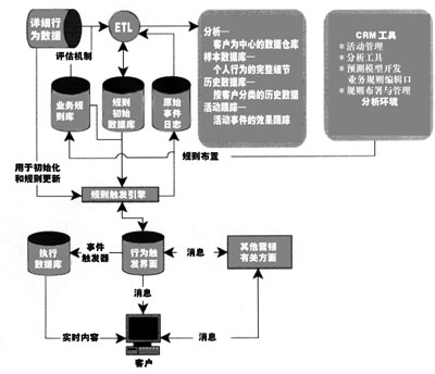 關(guān)系數(shù)據(jù)庫系統(tǒng)有三種主要數(shù)據(jù):典型客戶案例的詳細(xì)數(shù)據(jù)、對所有客戶的總結(jié)性歷史數(shù)據(jù)以及具體活動的數(shù)據(jù)。分析數(shù)據(jù)庫提供輸入數(shù)據(jù),從而得到對客戶的認(rèn)識,而滿足ETL處理的業(yè)務(wù)規(guī)則庫為分析數(shù)據(jù)庫提供派生屬性。這個過程將保持離線分析和實(shí)時(shí)事件觸發(fā)規(guī)則之間的同步,在動態(tài)建立表格的過程中處理初始化完成后的派生屬性相加,并對相應(yīng)的元數(shù)據(jù)進(jìn)行更新,這些處理都是自動實(shí)現(xiàn)的。