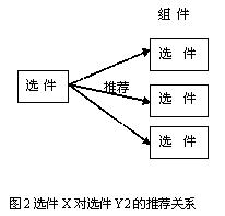 當(dāng)客戶選擇某個選件時,系統(tǒng)自動提示推薦另一選件,這種關(guān)系稱為選件的推薦關(guān)系。比如,在配置手機產(chǎn)品時,選擇了某電話選件,則推薦使用特定充電器型號選件,雖然其他類似的選件也可以適用。如圖2所示,雖然選件X可以與組件Y內(nèi)的選件Y1,Y2,Y3搭配,但推薦使用Y2。