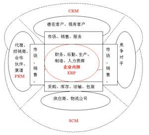 。。理解了什么是供應(yīng)鏈之后,我們可以來著重看一下CRM和供應(yīng)鏈之間的聯(lián)系?蛻絷P(guān)系管理是把客戶,尤其是潛在客戶和現(xiàn)有客戶作為管理的中心,將企業(yè)的運營圍繞著客戶來進行,無論是市場,還是銷售,亦或售后服務(wù),只要是和客戶打交道的環(huán)節(jié),都能夠知道客戶的最新信息,得到關(guān)于客戶的完整的統(tǒng)一的交往記錄,F(xiàn)在的客戶關(guān)系管理已經(jīng)將管理的對象延伸出直接客戶的范疇,而是包括了企業(yè)的代理、媒體合作者、供應(yīng)商、員工等等。這樣看來,供應(yīng)鏈與客戶關(guān)系管理并不是簡單的誰包含誰的關(guān)系,而是相互有交集的關(guān)系(如下圖所示)。