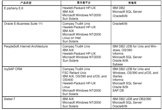 有些環(huán)境是軟件所必須要支持的。技術(shù)架構(gòu)必須要支持Microsoft NT/2000、Sun Solaris服務(wù)器平臺(tái)、IBM DB2、Microsoft SQL Server和Oracle Server管理系統(tǒng)。這些都是世界領(lǐng)先的系統(tǒng)環(huán)境,而且也是企業(yè)最可能要使用到的系統(tǒng)。因此如果產(chǎn)品不能支持這些環(huán)境顯然會(huì)產(chǎn)生很大的局限性。從上表我們可以看出,除了Oracle外都能夠支持這些“必須的“環(huán)境。(因?yàn)镺racle必須要支持自己的數(shù)據(jù)庫。)