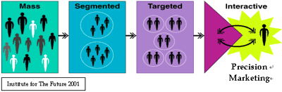 首先,互聯(lián)網的出現(xiàn)改變了營銷的概念,為大規(guī)模定制創(chuàng)造了空前的機遇。隨著富裕而又有辨別能力的中產階級的逐漸壯大,預先營銷的期望以及針對個人的解決方案日益成為一種標準。從記住他們的行為&偏好并為他們發(fā)送相關產品信息 (例如Amazon.com) …到幫助他們得到自己理想中的產品 (例如Dell.com,) ,CRM觀念的關鍵之處就在于為客戶提供符合他們需求的產品/服務而不是向他們推銷你的東西;ヂ(lián)網使你能夠與客戶建立學習關系,從銷售轉移到解決問題。互聯(lián)網上的CRM已經上升到了另一個高度。