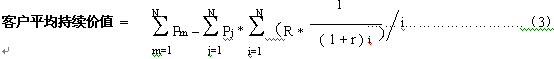 客戶持續(xù)價值可以根據(jù)交易次數(shù)計算,即:可以計算每一次客戶交易的客戶持續(xù)價值,也可以將公式(2)進(jìn)行改造成公式(3)后,計算客戶對于企業(yè)的平均持續(xù)價值。