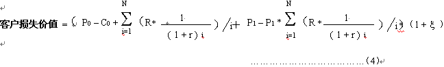 我們總是告戒企業(yè),客戶的流失,特別是有價值客戶的流失對于企業(yè)來說是巨大的損失,公式(4)為我們給出了具體答案。不是說對于企業(yè)來說,客戶不可以流失,隨著競爭的日益加劇,隨著企業(yè)在服務(wù)、銷售、市場等領(lǐng)域工作的失誤,客戶會重新選擇自己的服務(wù)對象,這里只是從數(shù)學(xué)的角度,提醒企業(yè)當(dāng)重要客戶流失后,給企業(yè)造成的損失有多大。至于企業(yè)挽留有價值客戶的方法,這里沒有涉及,它與企業(yè)的客戶戰(zhàn)略有關(guān),與企業(yè)的營銷策略有關(guān),與企業(yè)的服務(wù)策略有關(guān)。