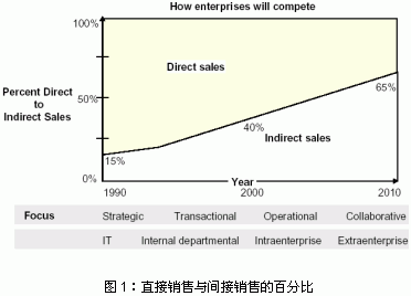 目前,在越來越多的行業(yè)銷售額的大部分是通過間接渠道取得的。例如,在高科技、生活消費(fèi)品和離散制造行業(yè),間接銷售合作伙伴帶來了的收入占總收入的70%以上