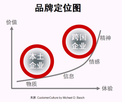客戶體驗(yàn)是客戶關(guān)系管理的重要組成部分。根據(jù)過去數(shù)年評(píng)選中國(guó)最佳CRM實(shí)施企業(yè)所作的分析,本土與外資企業(yè)在企業(yè)體檢中各項(xiàng)主要評(píng)分中有較大差距,其中之一是客戶體驗(yàn)(-7.1分,見圖一、本土與跨國(guó)企業(yè)之差距)。本土企業(yè)若只提供低層次的客戶體驗(yàn),只為客戶帶來(lái)低價(jià)值,也只能打價(jià)格戰(zhàn)、做代工,很難做大做強(qiáng)打通全球市場(chǎng)。做好品牌,其實(shí)再深入一點(diǎn)說(shuō)就是要做好客戶體驗(yàn),價(jià)值(價(jià)格)才會(huì)上去(見圖二、品牌定位)。