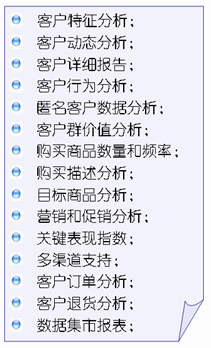 IQ等主流數(shù)據(jù)倉庫系統(tǒng)的無縫銜接,實(shí)現(xiàn)了CRM最核心的價(jià)值——多維度的客戶分析,從而在技術(shù)上和應(yīng)用上遠(yuǎn)遠(yuǎn)超越了傳統(tǒng)的CRM。