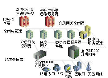 8200 IP傳真服務(wù)器等。中間層通過(guò)協(xié)議適配解決通用信令問(wèn)題,并且提供網(wǎng)絡(luò)和服務(wù)管理。第一層包含Total Control 1000介質(zhì)網(wǎng)關(guān),它通過(guò)多種訪(fǎng)問(wèn)網(wǎng)絡(luò)將不同類(lèi)型的業(yè)務(wù)量綜合在一起。