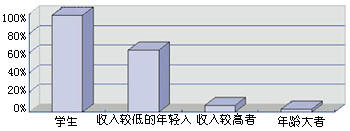 消費者根據(jù)文化程度和職業(yè)的不同,對IP電話的認可也不一樣,其中,學生和年輕的上班族的認知率是最高的,這和他們的收入以及較易接受新事物有關。學生的收入較低,年輕的上班族中不少人的收入不高,同時他們也是長途電話的主要使用者之一。對于那些高收入的消費者來說,IP電話所節(jié)省的費用必要性不大,而很多話費可以報銷,IP電話使用又不方便,因此他們一般不使用IP電話。而對于年齡較大的消費者來說,IP電話的不方便使用是最主要的原因之一。圖5是個人消費者對IP電話的使用程度比較。