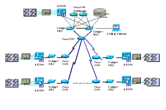 VoIP網(wǎng)關(guān)AS5300問世以來就可以支持兩個VoIP的中繼端口,在業(yè)界屬較高密度,而且99年年中就支持4個E1VoIP中繼端口。更主要的是AS5300具有Voice/Fax功能卡,能自動識別Voice和Fax,與Voice和Fax要采用不通的功能卡的產(chǎn)品相比,等于容量更是提高。這些技術(shù)特點為該試驗網(wǎng)工程的可擴(kuò)展性提供了較高的起點。
