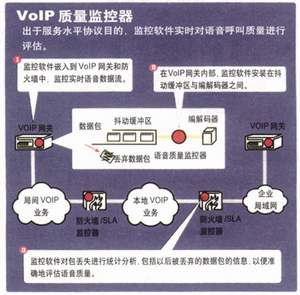 IP語(yǔ)音呼叫質(zhì)量無(wú)法用常規(guī)方式監(jiān)控。傳統(tǒng)的網(wǎng)絡(luò)監(jiān)控器的關(guān)注點(diǎn)是孤立的傳輸流統(tǒng)計(jì)數(shù)據(jù),而非固有的質(zhì)量、語(yǔ)音清晰度或最終用戶的感覺(jué)。這類傳統(tǒng)的工具提供有關(guān)鏈路吞吐量和利用率、抖動(dòng)、延時(shí)、錯(cuò)誤、包丟失總數(shù)或丟包率的孤立的數(shù)據(jù)。然而,這些統(tǒng)計(jì)數(shù)據(jù)沒(méi)有揭示呼叫質(zhì)量,因?yàn)樗鼈兒鲆暳蒜Оl(fā)丟失,不理會(huì)抖動(dòng)緩沖區(qū)造成的包丟棄,沒(méi)有考慮網(wǎng)絡(luò)故障對(duì)用戶感覺(jué)造成的影響。