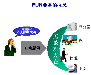 個人統(tǒng)一號碼業(yè)務是一種購筑在IP網(wǎng)上的全新通信網(wǎng)絡業(yè)務,該業(yè)務給人個分配一個終身號碼,利用此號碼,用戶可以利用現(xiàn)有通信網(wǎng)絡的各種終端進行通信,這種業(yè)務可以給用戶帶來多方便的利益,首先主叫用戶只需記住被叫方唯一的號碼即PUN,就可實現(xiàn)3W通信(任何地方、任何點間、任何人)之間的通信,對被叫方,可以利用現(xiàn)有的任何通信手段,如固定電話,移動終端,PC機、分組終端、語音郵箱等進行通信,并可以按方便和節(jié)省資費等原則,靈活設置對不同終端的利用,如用戶上網(wǎng)時,即可以利用PC進行通話,解決了上網(wǎng)打電話的問題,或者在有多種通信手段可以選擇的時候,可以方便地選擇利用資費較低的通信手段,此外,由于該網(wǎng)絡是架構在IP之上,因此,在長途業(yè)務不僅可以方便地通信,而且可以享受到IP電話的低資費。