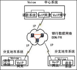 語音聯網可以由多個地市系統(tǒng)組成,同時可以將Voice Over IP聯網的關守設立在中心系統(tǒng)或其中的某一個地市,地市之間的語音聯網的數據通道可以利用銀行現有的數據網絡來支持,并根據需要分配帶寬。