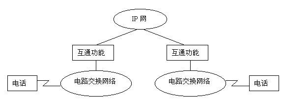 第三階段的重點(diǎn)是電路交換網(wǎng)通過IP網(wǎng)至電路交換網(wǎng),即實(shí)現(xiàn)以Internet作為傳送手段進(jìn)行通信的目的,其示意圖如圖所示。