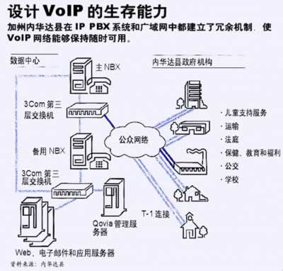 由于設(shè)計得當(dāng),加利福尼亞州內(nèi)華達縣的VoIP網(wǎng)絡(luò)在長達兩年的運行期間只有過5分鐘的停機。該縣桌面服務(wù)經(jīng)理Bill Miller指出,這部分停機時間還是按計劃進行系統(tǒng)維護時造成的。