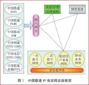 中國聯(lián)通IP電話網(wǎng)自1999年6月入運(yùn)營以來,經(jīng)過一期、二期和三期工的建設(shè),目前,網(wǎng)絡(luò)已覆蓋中國329個地市,E1端口規(guī)模超過1.8萬個,成為全球最的IP電話網(wǎng)絡(luò)。網(wǎng)絡(luò)的話務(wù)量已經(jīng)達(dá)到月近10億分鐘,已是世界上流量最大的電話網(wǎng)絡(luò)。中國聯(lián)通IP電話網(wǎng)總體框架圖1所示,包括IP承載網(wǎng)絡(luò)、業(yè)務(wù)網(wǎng)絡(luò)(包式括一次撥號業(yè)務(wù)網(wǎng)、二次撥號業(yè)務(wù)網(wǎng)、集團(tuán)用戶業(yè)務(wù)網(wǎng)和移動用戶業(yè)務(wù)網(wǎng))、IP電話網(wǎng)絡(luò)管理設(shè)備(如計費(fèi)結(jié)算系統(tǒng)、網(wǎng)管系統(tǒng)等)、與各類本地網(wǎng)絡(luò)連接的接入網(wǎng)關(guān)等部分。